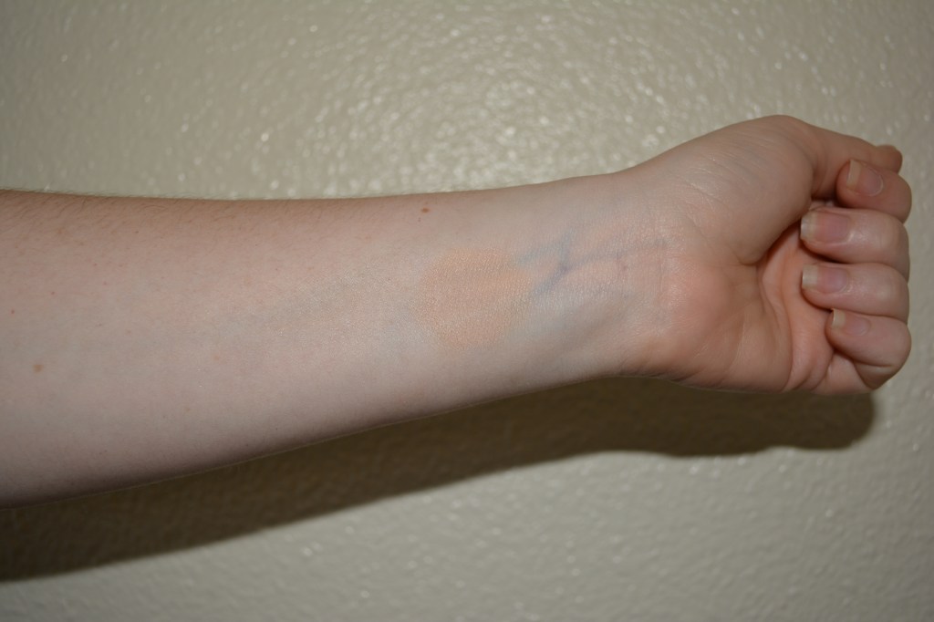 I like the pot packaging way better than the concealers that come in a tube with a wand because this is easier to keep sanitary, but I don’t use this on my clients, so that’s not a deal-breaking factor. The biggest downside to the packaging is the gap between the metal pan the product is actually in, and the plastic container the pan sits in. When I swirl my finger in the pan, product gets trapped in that crevice and is a pain in the butt to dig out in order to prevent bacteria build-up. I enjoy that they made the lid clear, because it is easy to pick between which shade of product I need when the packaging has a clear area, vs the packages that aren’t clear and you end up running out and either have to run to the store to replace it or go without for a few days until it arrives in the mail. I normally don’t have much of an issue with that because when I get any color, its just a sunburn, and then back to pale, but for those who tan easily or who get spray tans and use various shades throughout the year, that’s a nice benefit (see what I did there?).